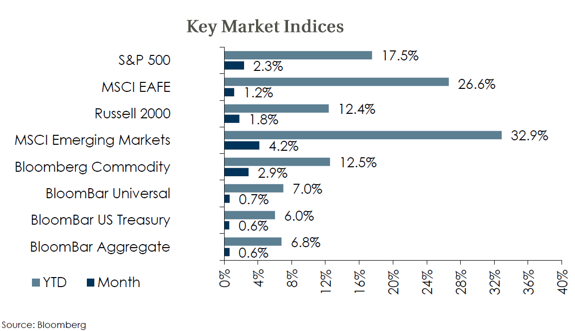 Global equities were mostly positive in October as momentum from the AI trade continued and the third quarter earnings season got off to a strong start.