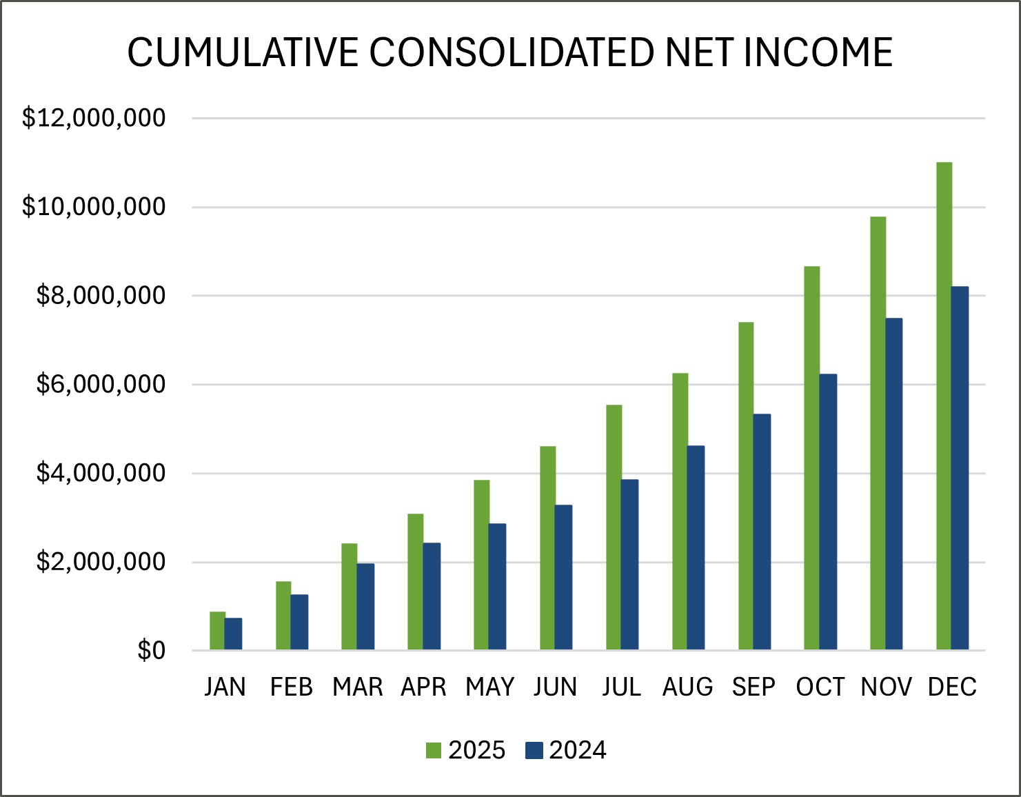 Consolidated net income was $11 million, an increase of 34% from $8.2 million in 2024.