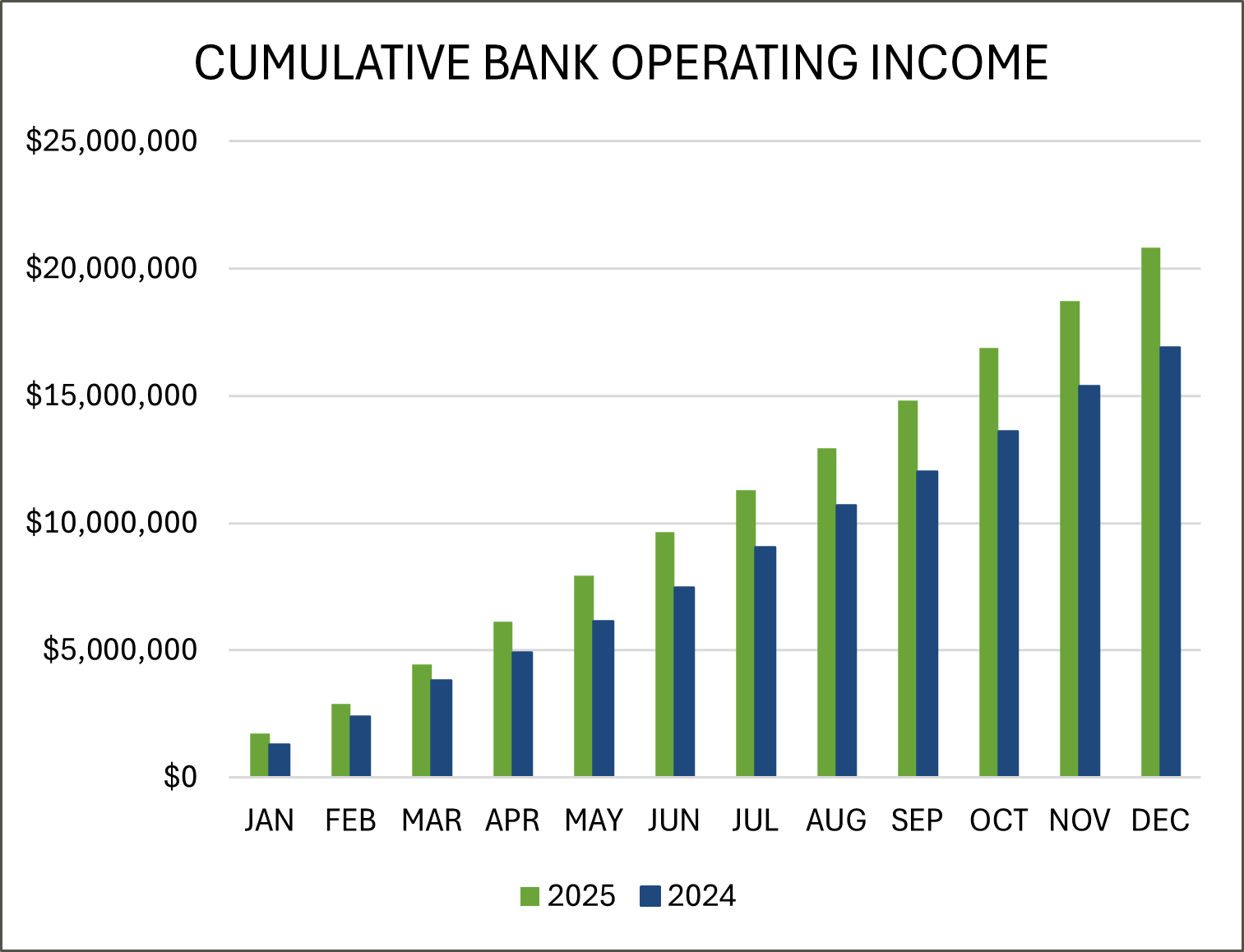 Operating income (pre-tax, pre-provision expense income adjusted for nonrecurring items) was $20.7 million, representing an increase of 23% from $16.9 million in 2024.
