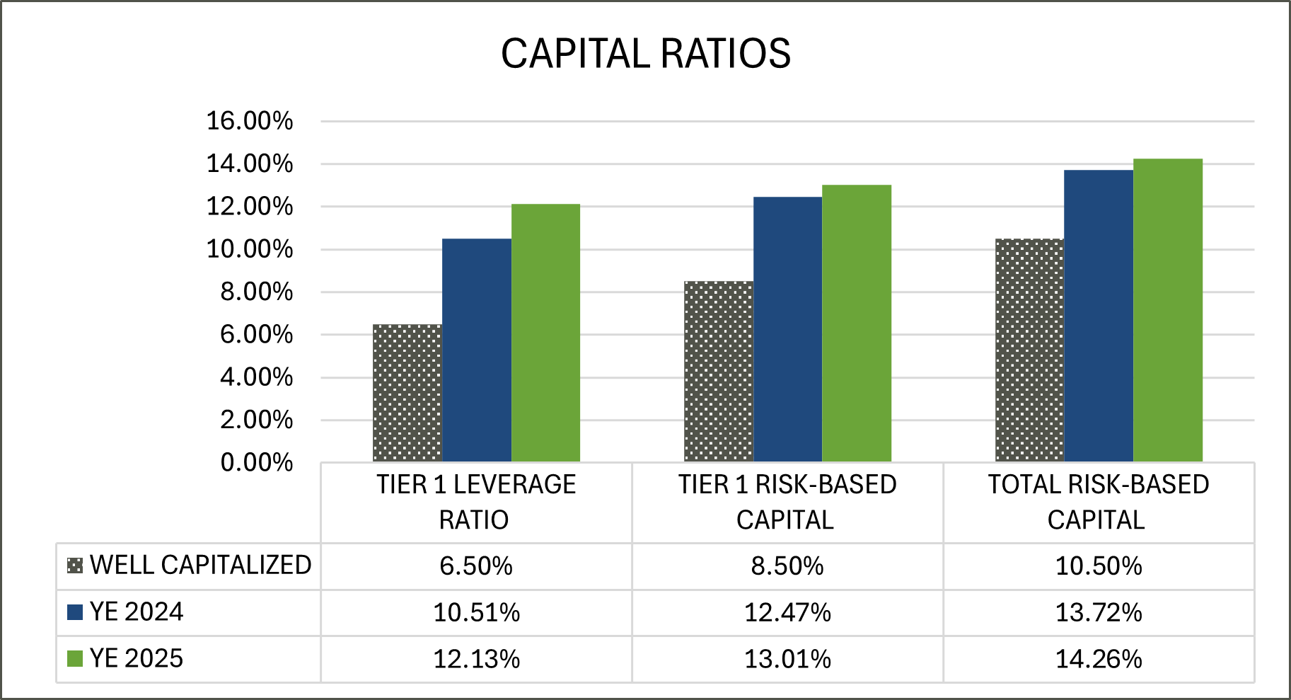 Parkside Financial Bank & Trust's capital position remains strong and continues to grow, with total year-end equity of $129 million, which exceeds capital requirements for each of our regulatory capital measures.