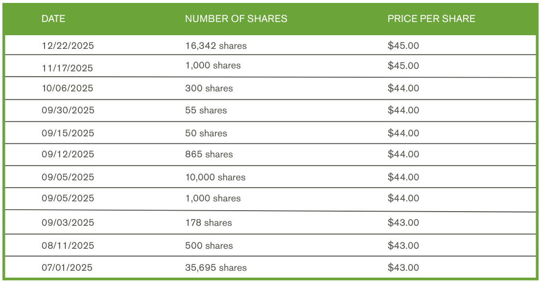 Highlighted below are stock transactions from the second half of 2025. Through My Private Shares you can communicate with one another regarding potential stock transactions, as well as view recent trade activity and stay informed on Parkside updates.